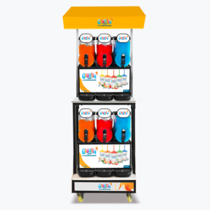 Concept Roller composé de 2 machines à Granita® 3 bacs et d’un chariot à roulette.